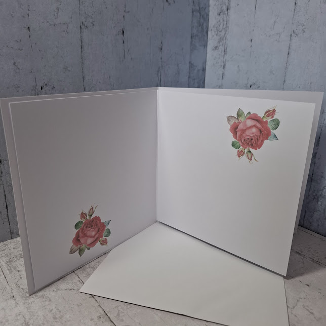 • Inside has a blank insert with a rose design for the customer to add their own personal greetings.