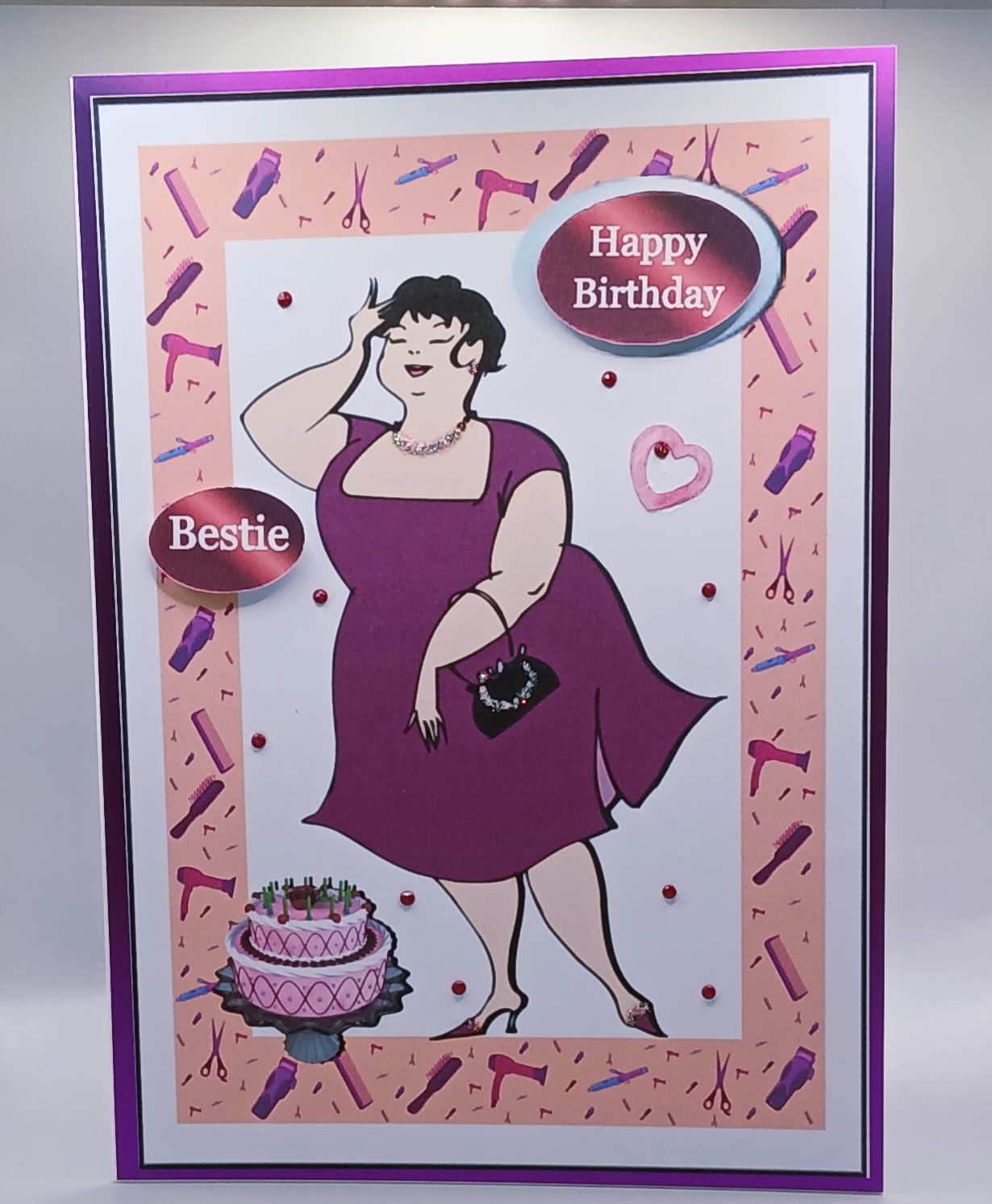 A funny birthday card for your bestie, It measures 21 x 14.5 cm. It has raised sentiments and embellished with glitter. Comes complete with an envelope and cello bag for protection. P and P included in the price.