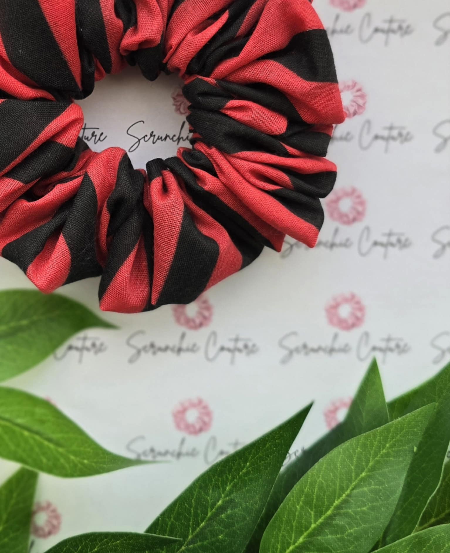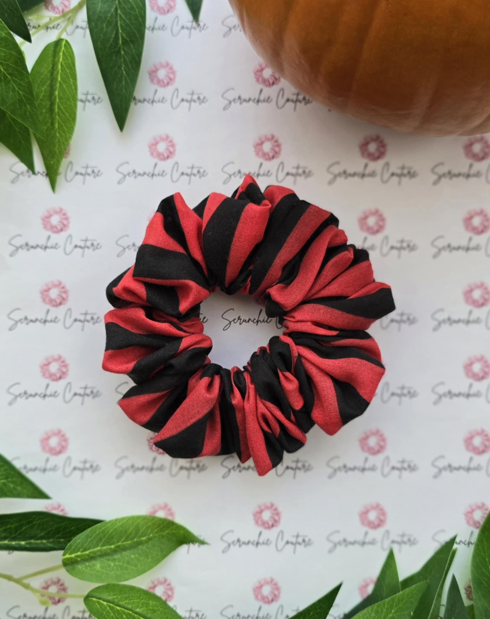 Black & Red Stripe Scrunchie – Size: Regular