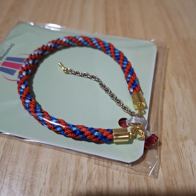 bracelet/accessories/jewellery/goldlobsterclasp/red/blue/8inch/kumihimo