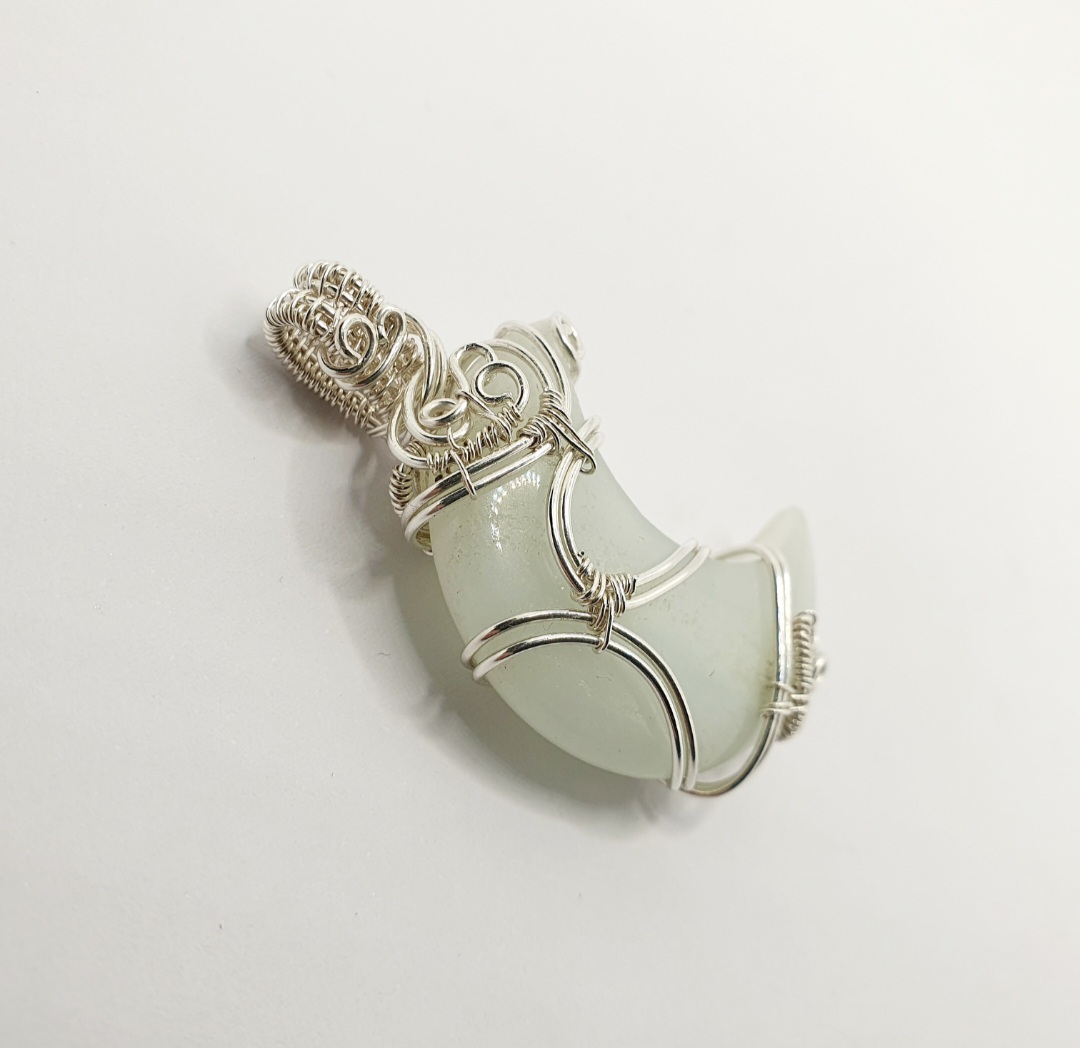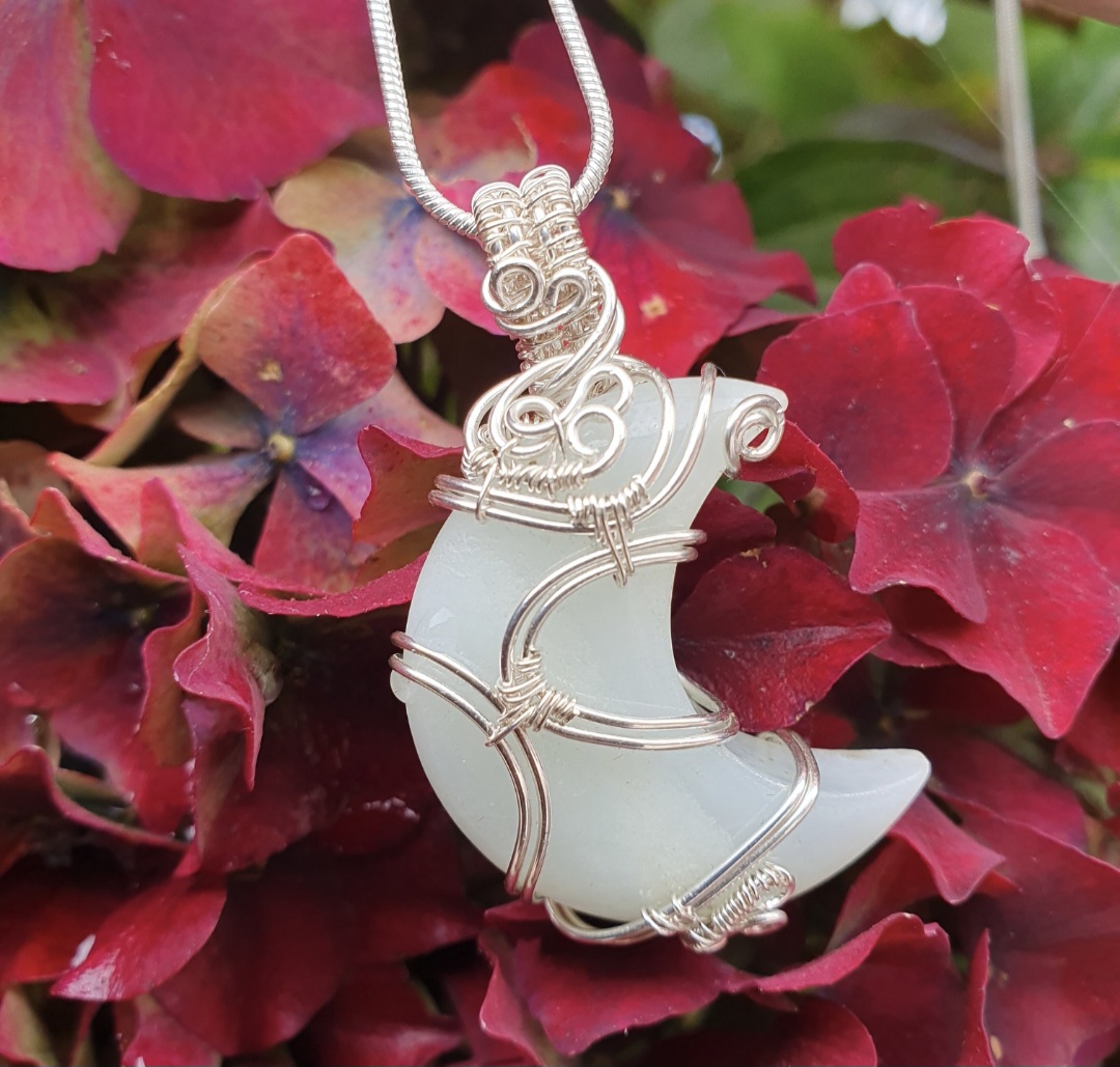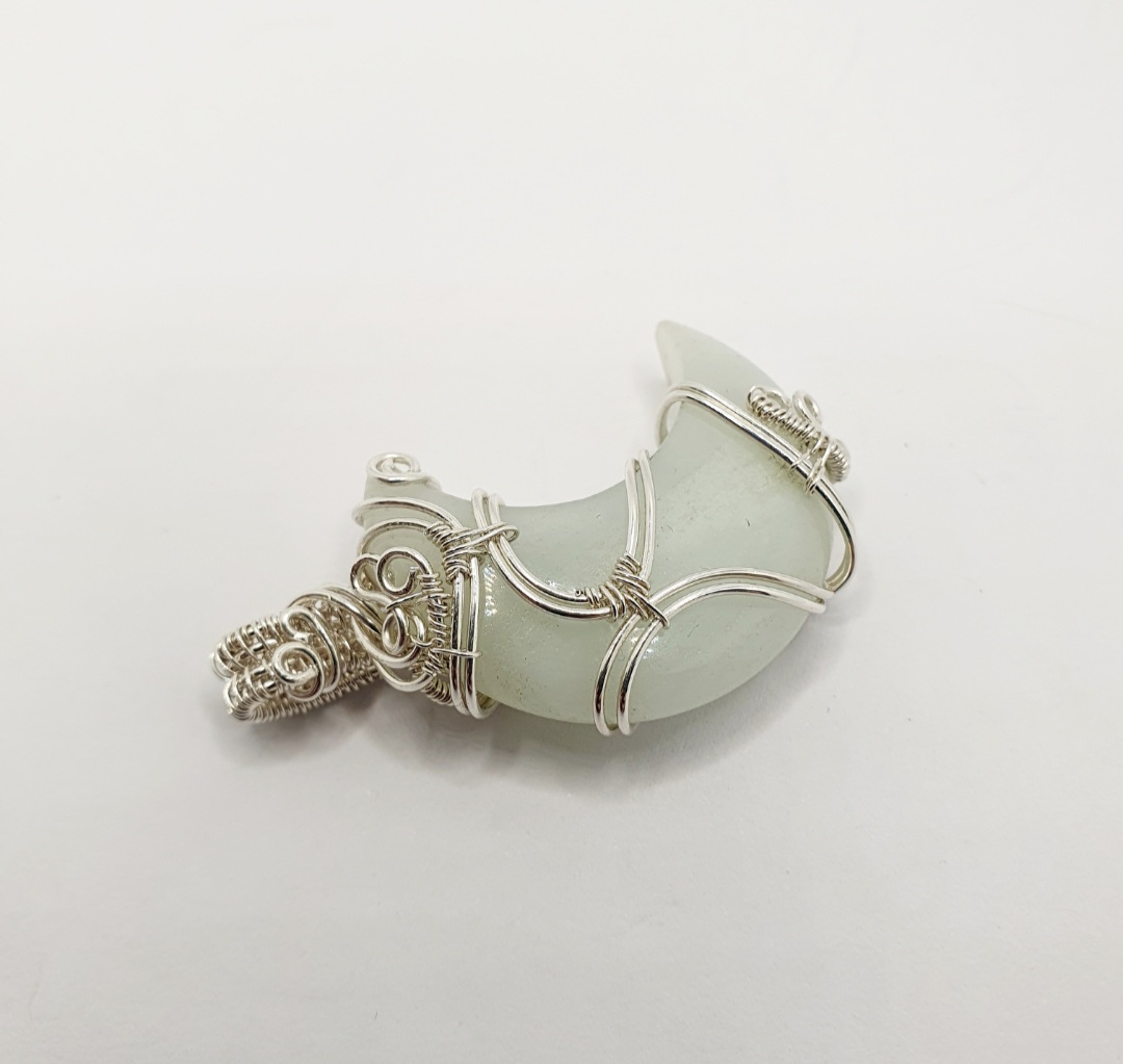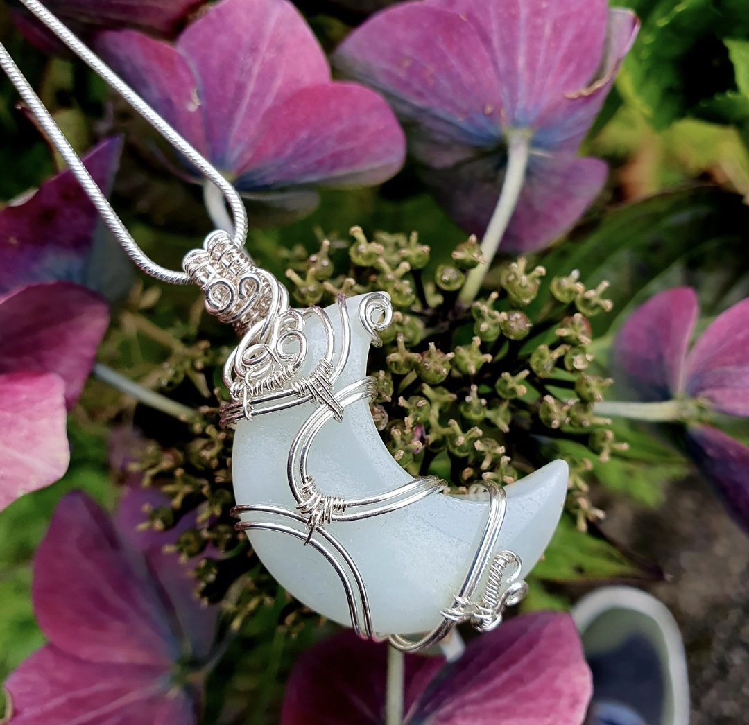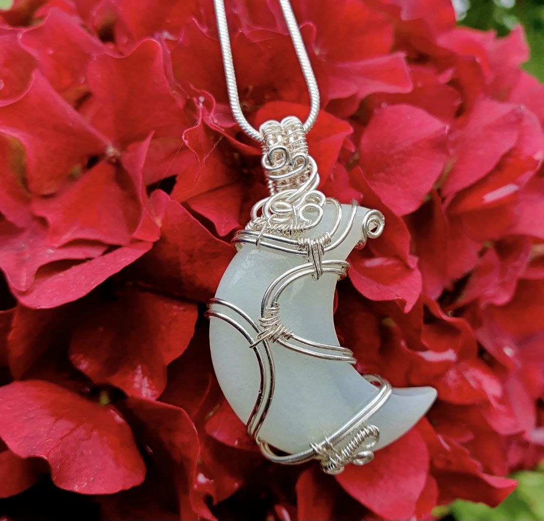 This majestic crescent moon shaped Caribbean Calcite is wrapped in sterling silver wire.