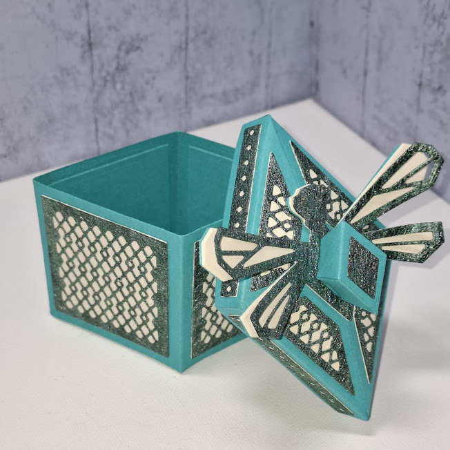 giftbox/diamondshape/turquoise/green/cream/handmade/handcrafted/dragonfly/giftpackaging