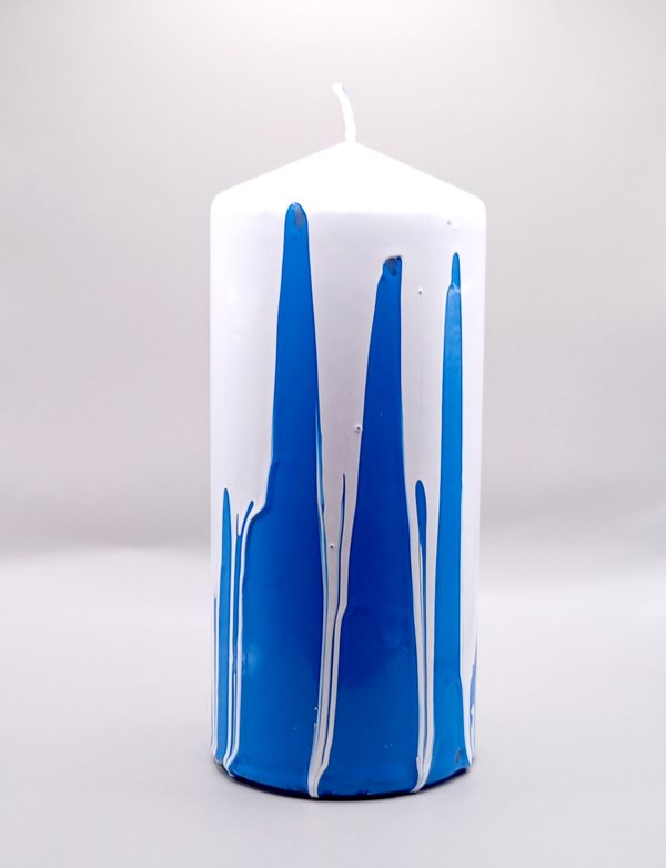 A really vibrant royal blue and brilliant white hand painted candle. Painted in a high gloss lacquer this would be a stunning addition to your home or make a beautiful gift. Measures approx 16cm high and is for ornamental use only and not for burning. P&P is included is the price.