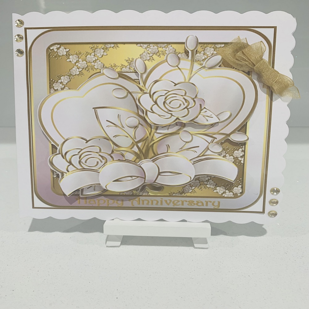 Handcrafted 3D Decoupage Wedding Anniversary Greeting Card.
