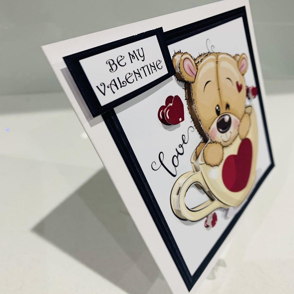 Handmade 3D Decoupage Valentines Day Be Mine “cute teddy” 6×6 Greeting card
