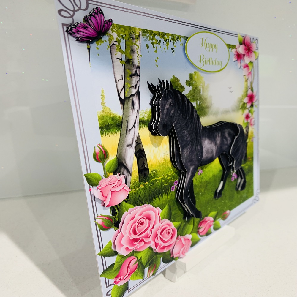 Happy Mothers Day or Birthday handmade 8×8 Square 3D Decoupage greeting card ideal for any horse lover.