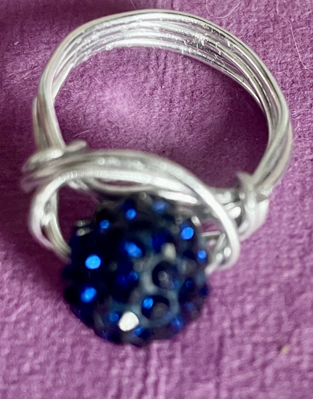 Beautiful handmade wire wrapped ring made with a 12mm shamballa bead in colours like – Navy blue, Lilac & Turquoise.