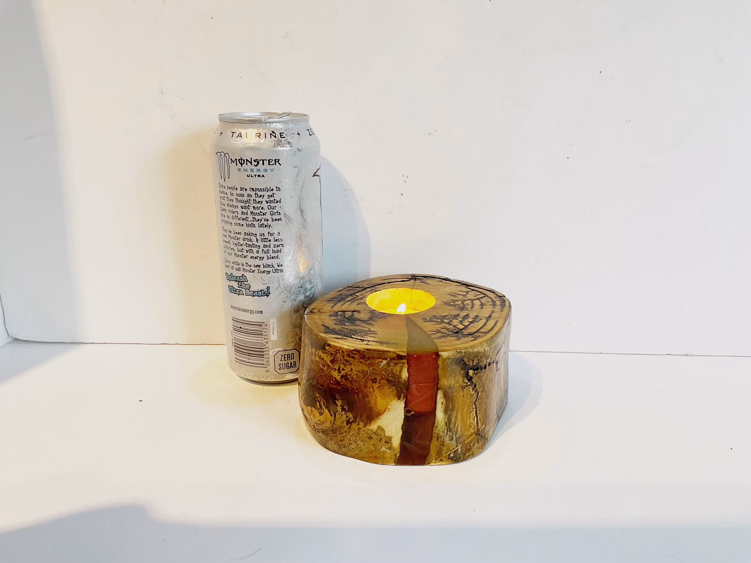 Rustic Tea Light Holder made from saw log., Varnished for protection and to enhance the colour of the wood and decorative Fractal Burning