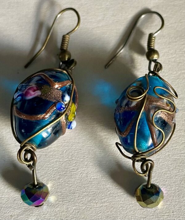 Beautiful lampwork wire-wrapped earrings in 3 different designs –