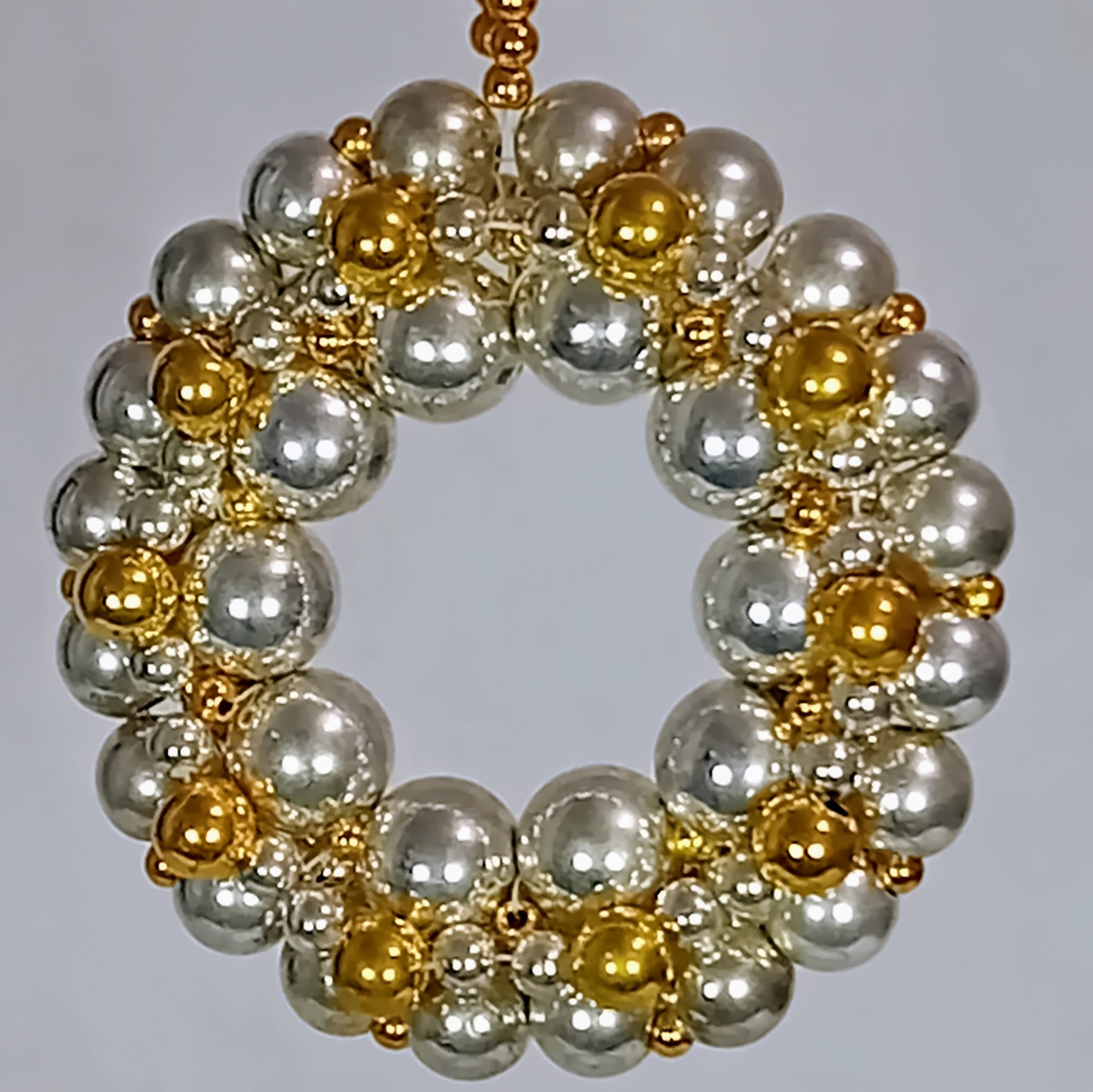 These beaded wreaths are little loops of festive joy—handwoven from shimmering acrylic beads in a variety of colour combinations, from classic gold and silver to playful pops of red, green, and beyond. Each one is shaped into a cheerful ring that catches the light and adds a touch of sparkle wherever it hangs.