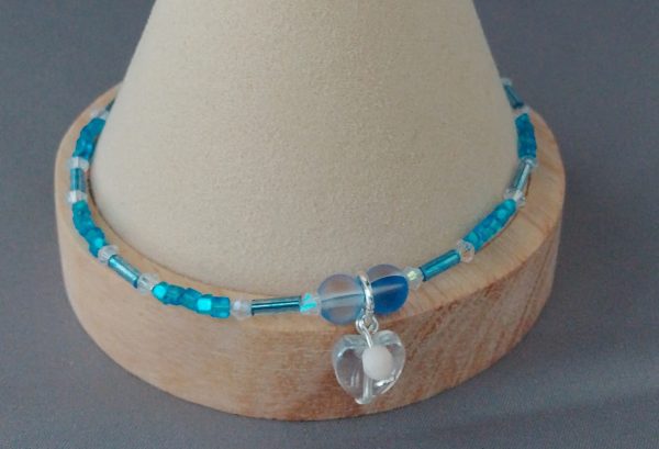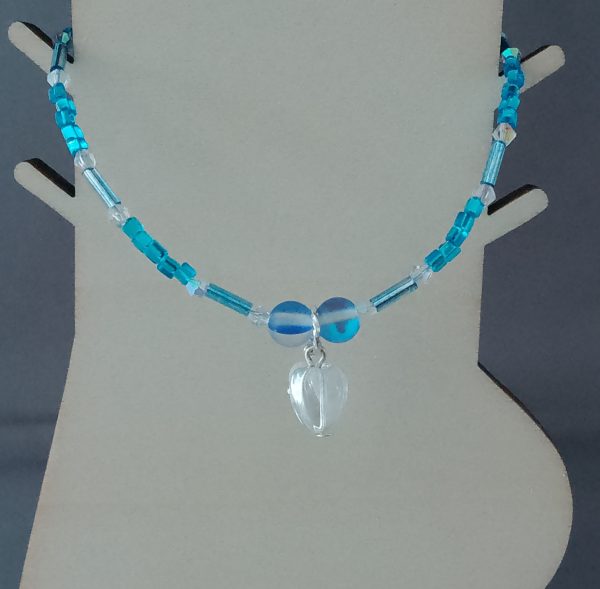 The combination of Mystic Quartz focal beads with crystal and blue seed beads creates a radiant, sun-kissed effect—perfect for summer styling. The silver plated base metal extender chain adds great versatility, ensuring a comfortable fit throughout the season, and the crystal heart and drop give it a lovely, delicate charm.