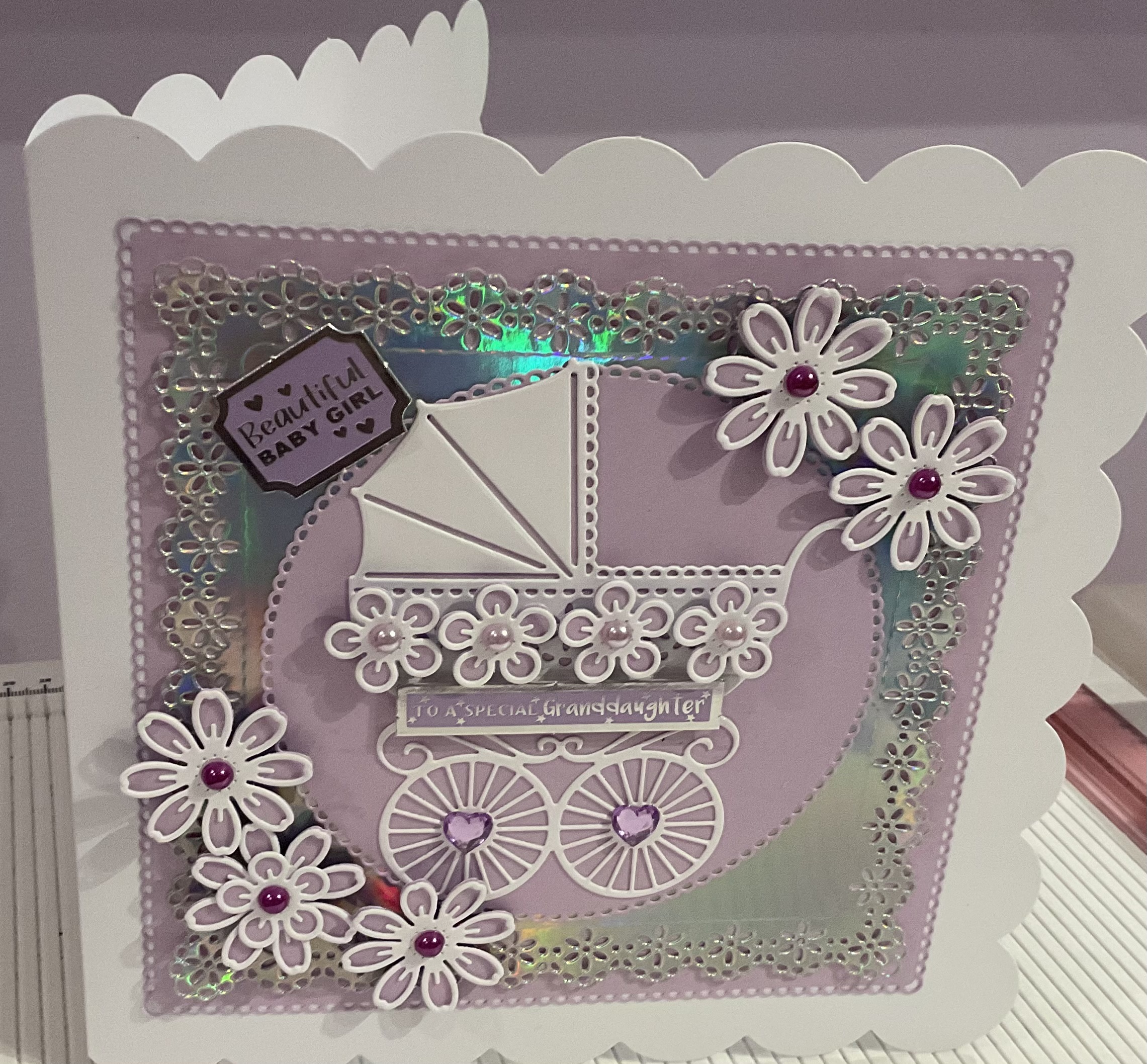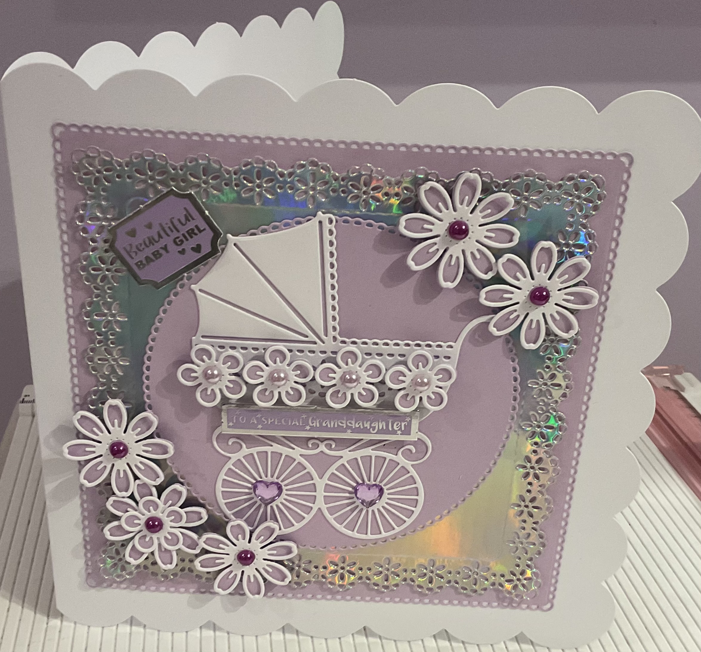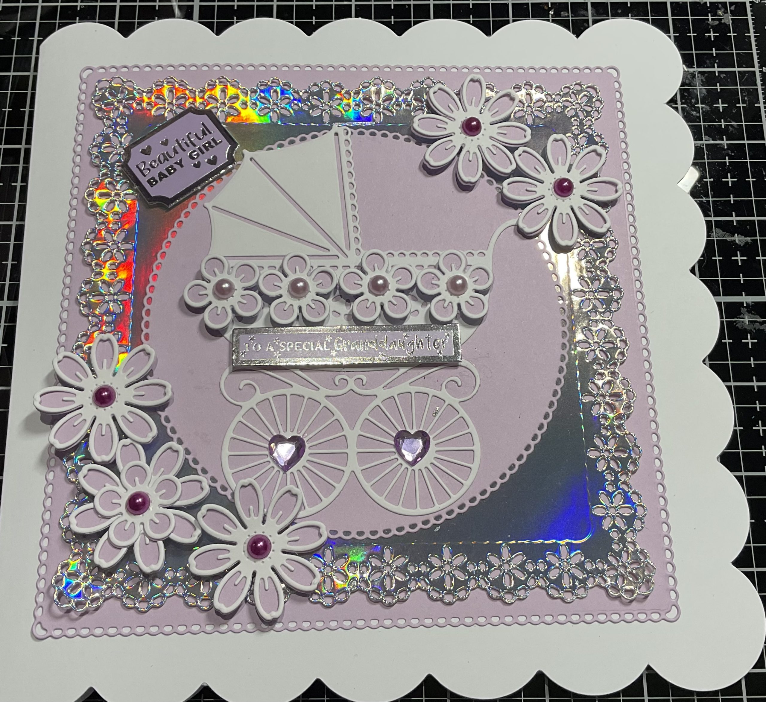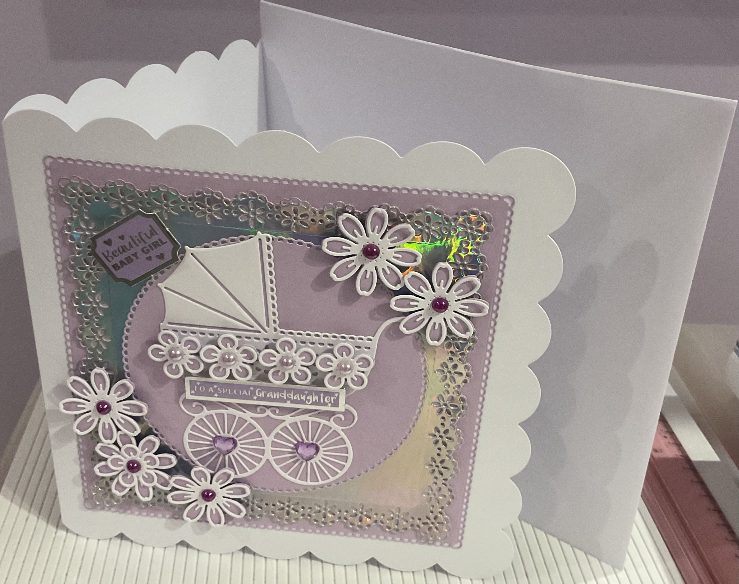 New baby card for a granddaughter beautiful card, Size 8X8 inches with envelope nice scalloped edge card