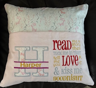 Personalised Reading Cushion. Lovely gift for a child to be able to put their reading book in the pocket ready to have that bedtime story read to them.
