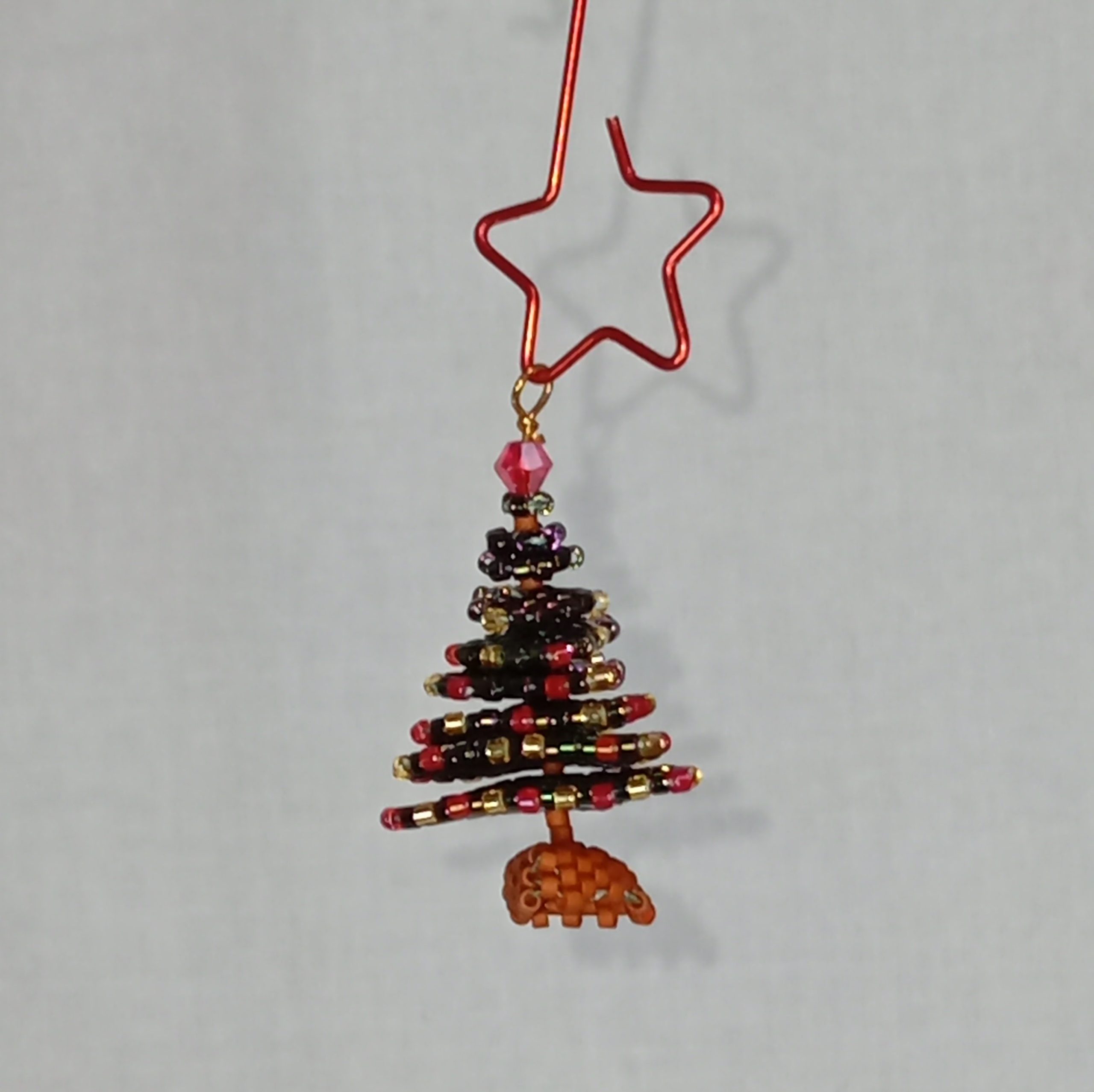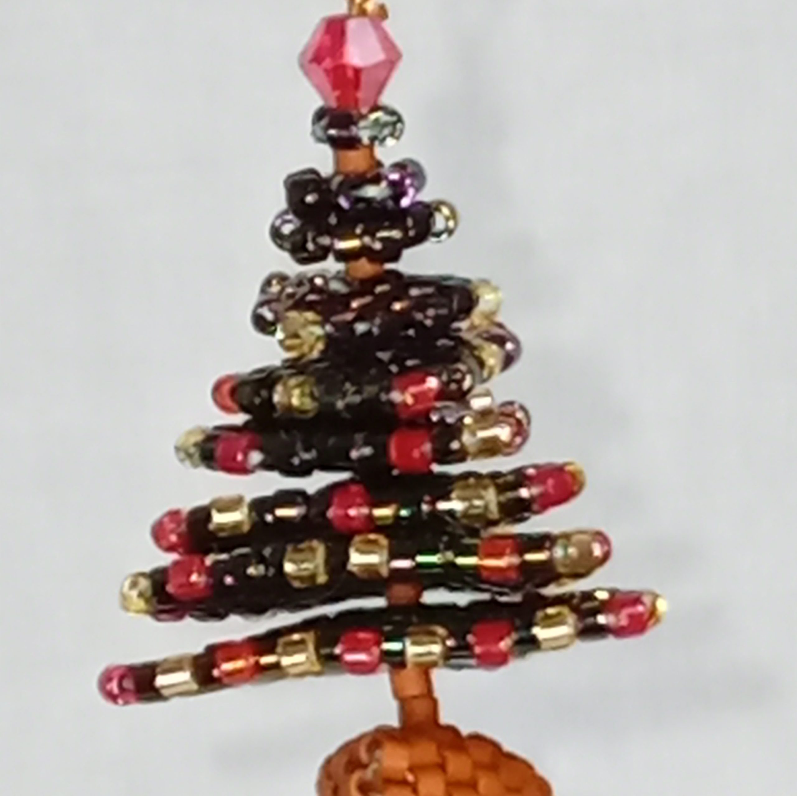 This tiny tree doesn’t need tinsel—it is the sparkle. Just 1.5″ tall and packed with personality, it’s handwoven from beads in festive reds, golds, and greens, with a cheeky topper and a sturdy little trunk that says, “I’m here to party.”