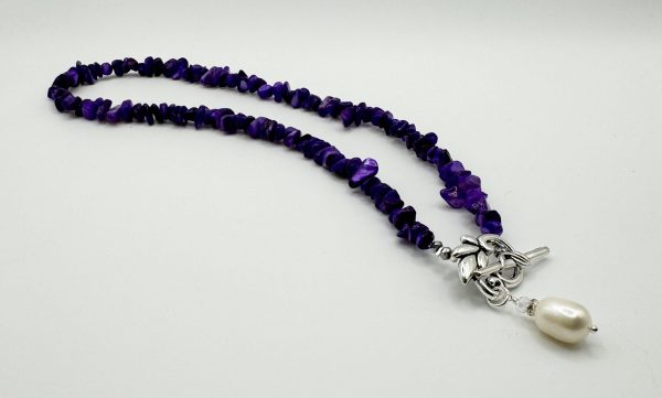Choose from semi-precious chips, shell nuggets or sparkling crystals to wrap around the back of the neck and come together with a gorgeous decorative clasp from which a freshwater pearl dangles.
