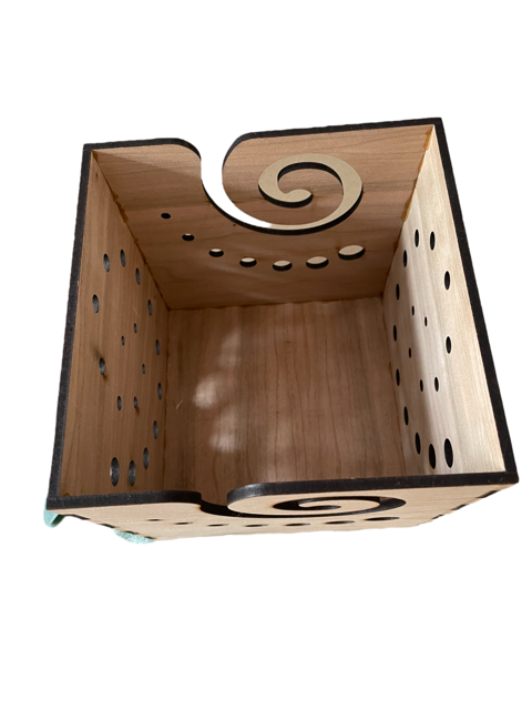 Yarn box made from 4mm cherry Verneered MDF.
